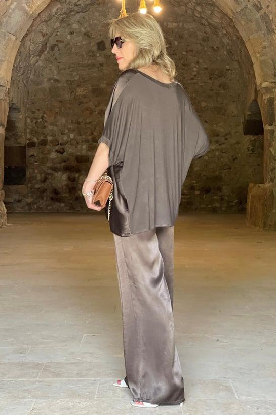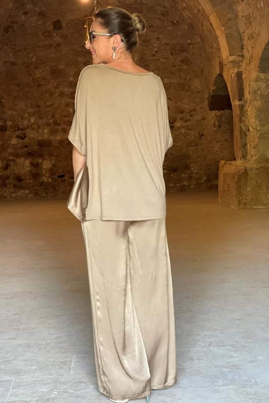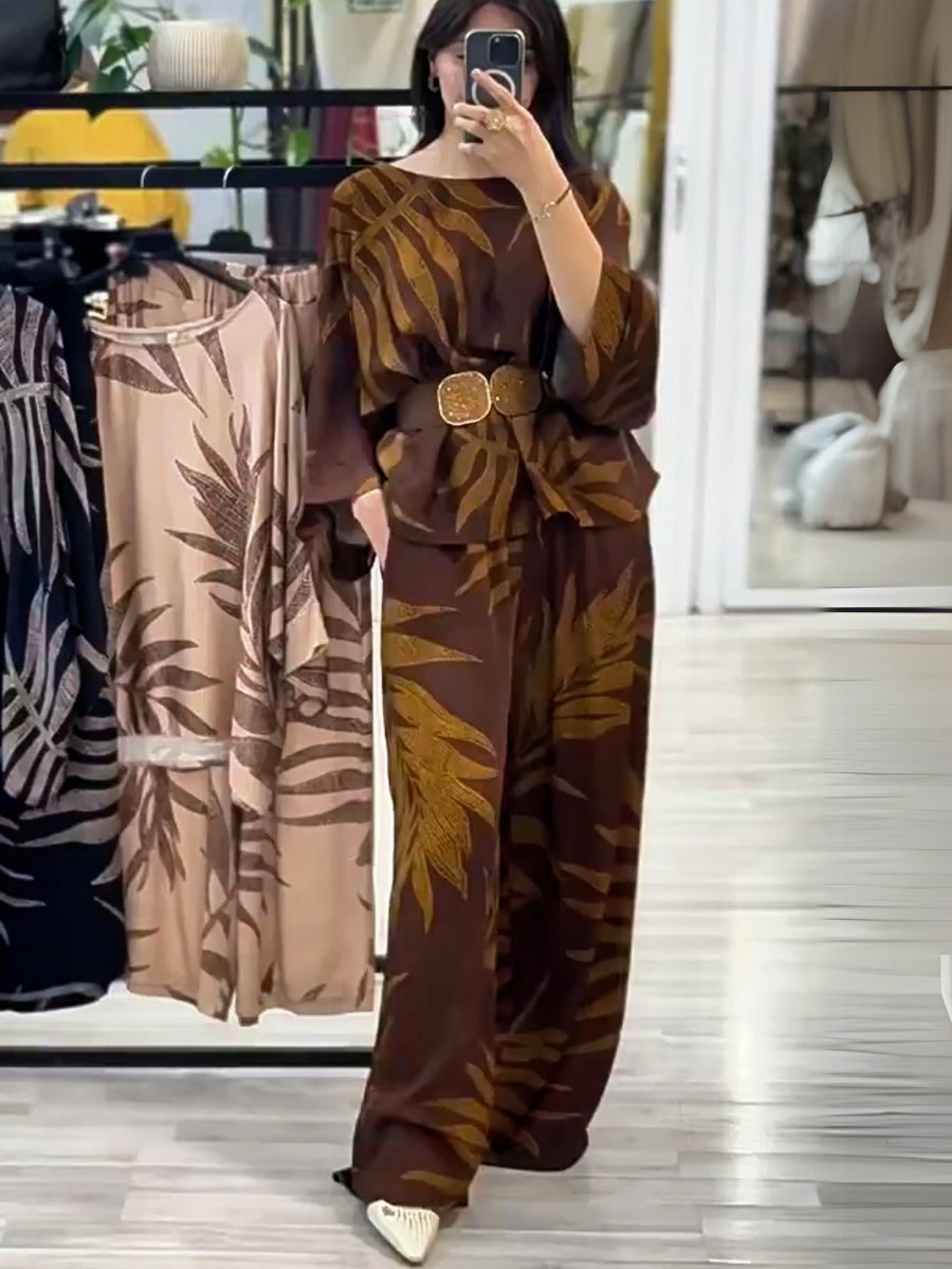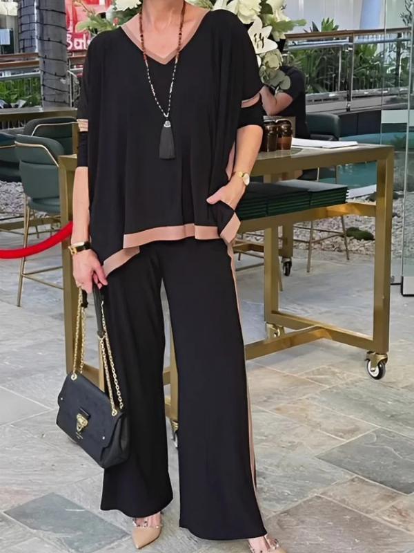 Casual Two-Pieces Outfits Solid Color Casual Top Loose Bootcut Trousers Pants Sets