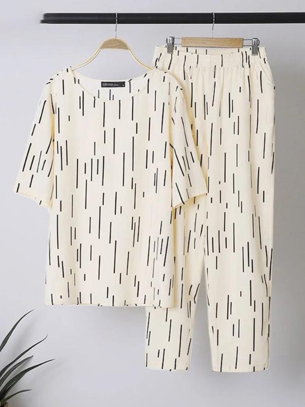 Short Sleeves Plaid Top + Pants Two-piece Suit
