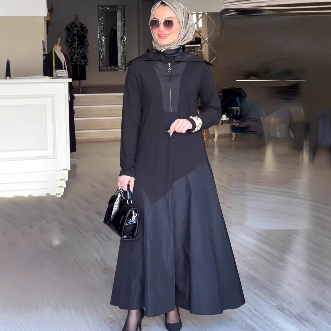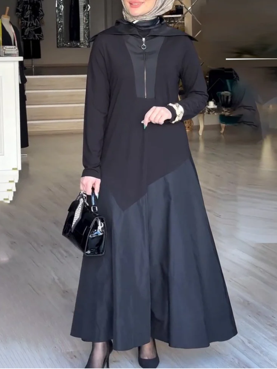Colorblock Top Wide Skirt Fashionable Temperament Two-piece Set
