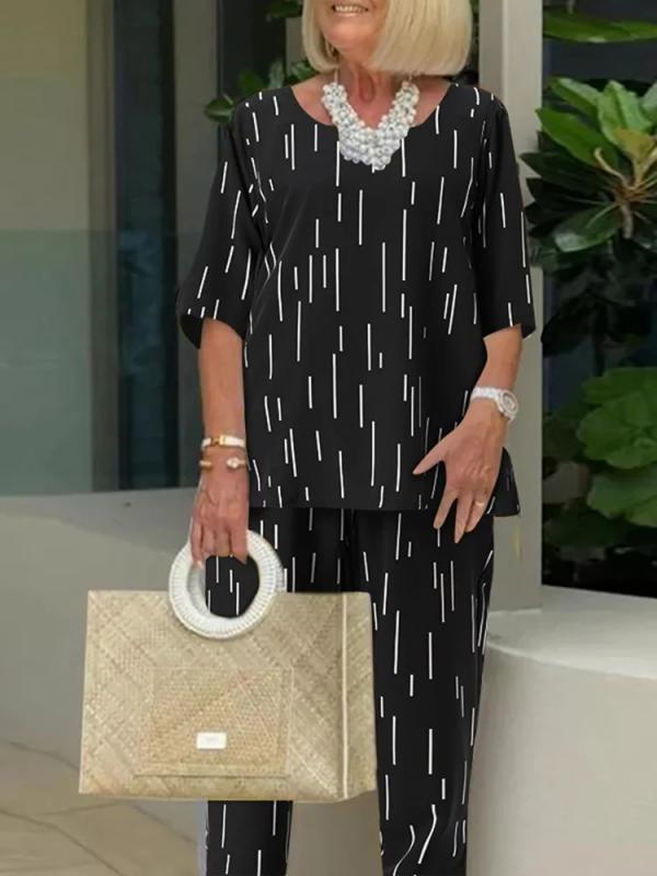 Summer V-neck patchwork 3/4 sleeve two-piece suit