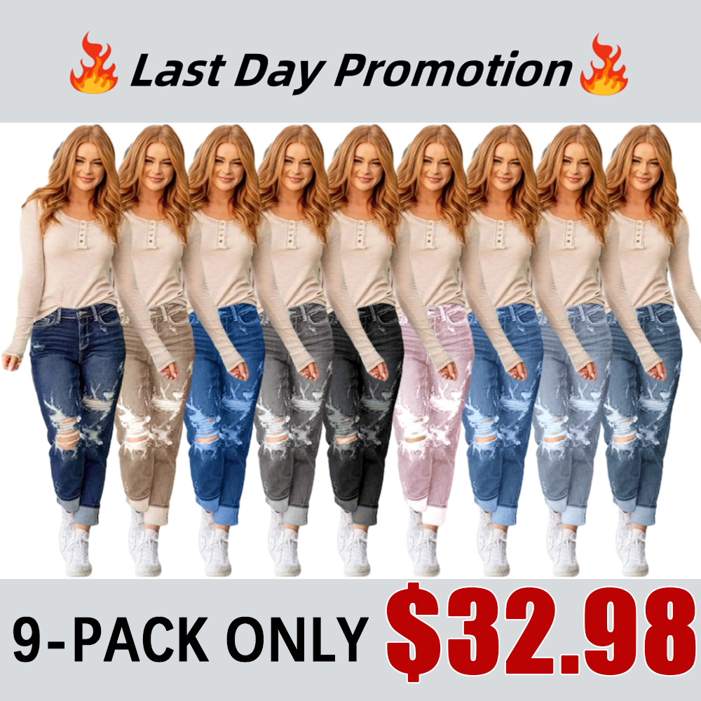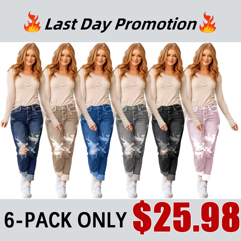 Tummy Control Distressed Cuffed Boyfriend Jeans