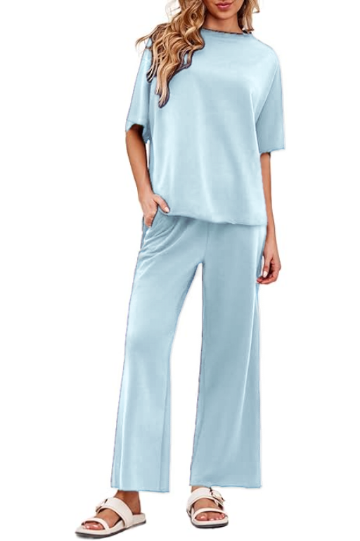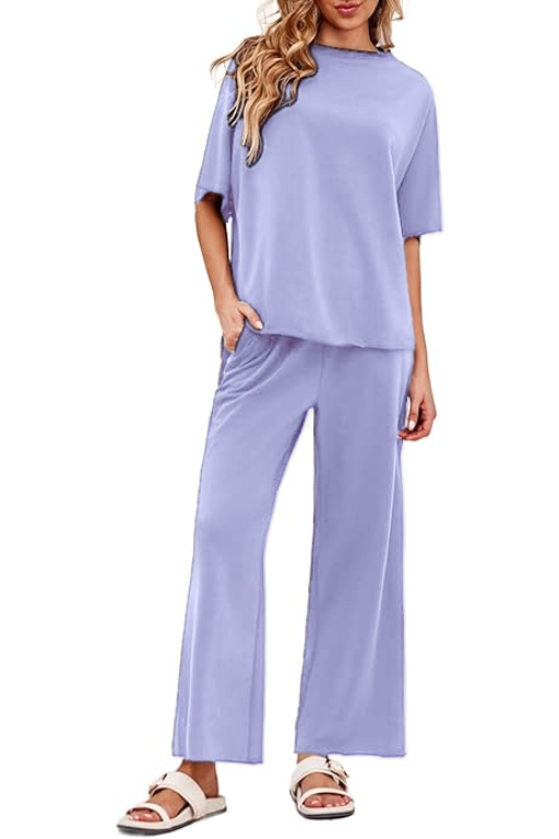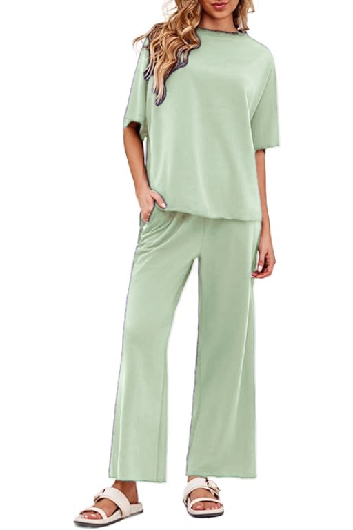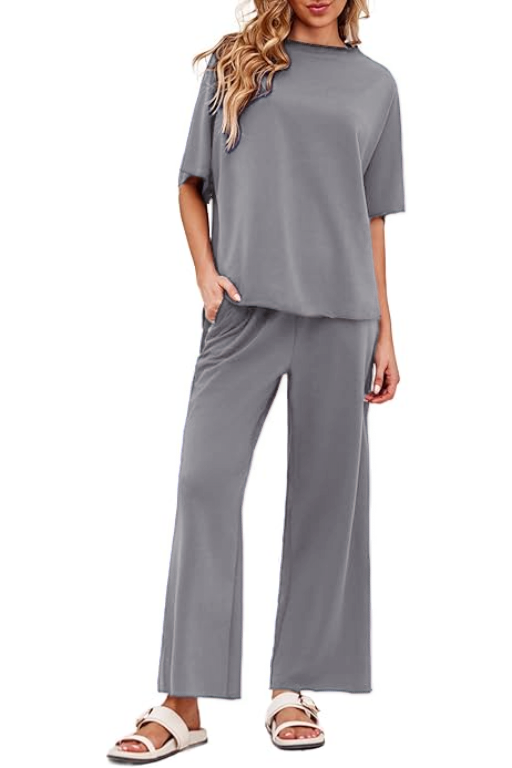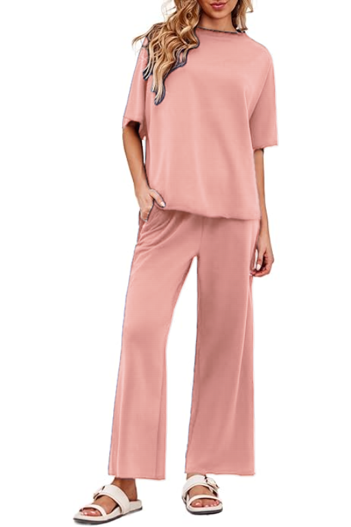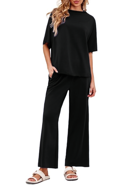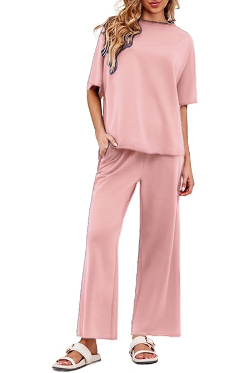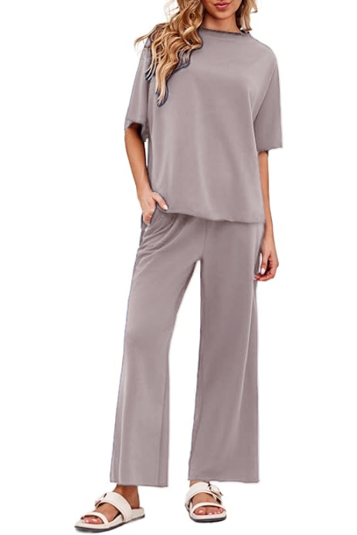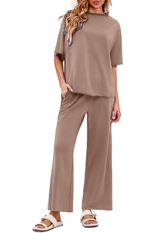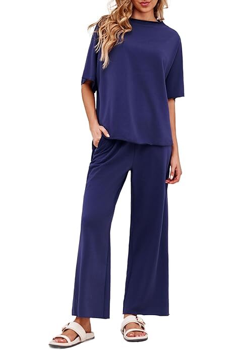 Women's 2 Piece Outfits Casual Lapel Half Zip Sweatshirts And Wide Leg Pants Tracksuit Sets