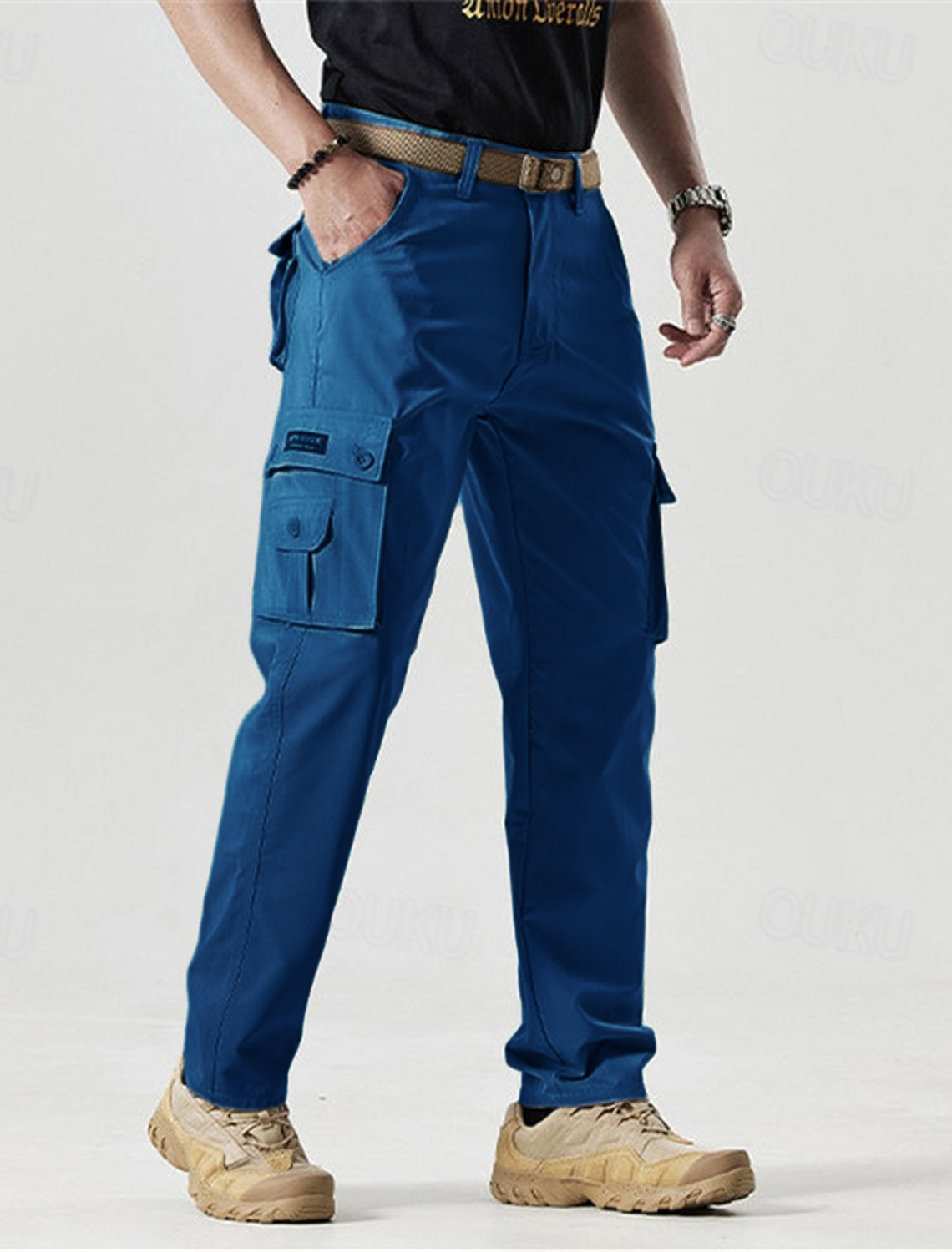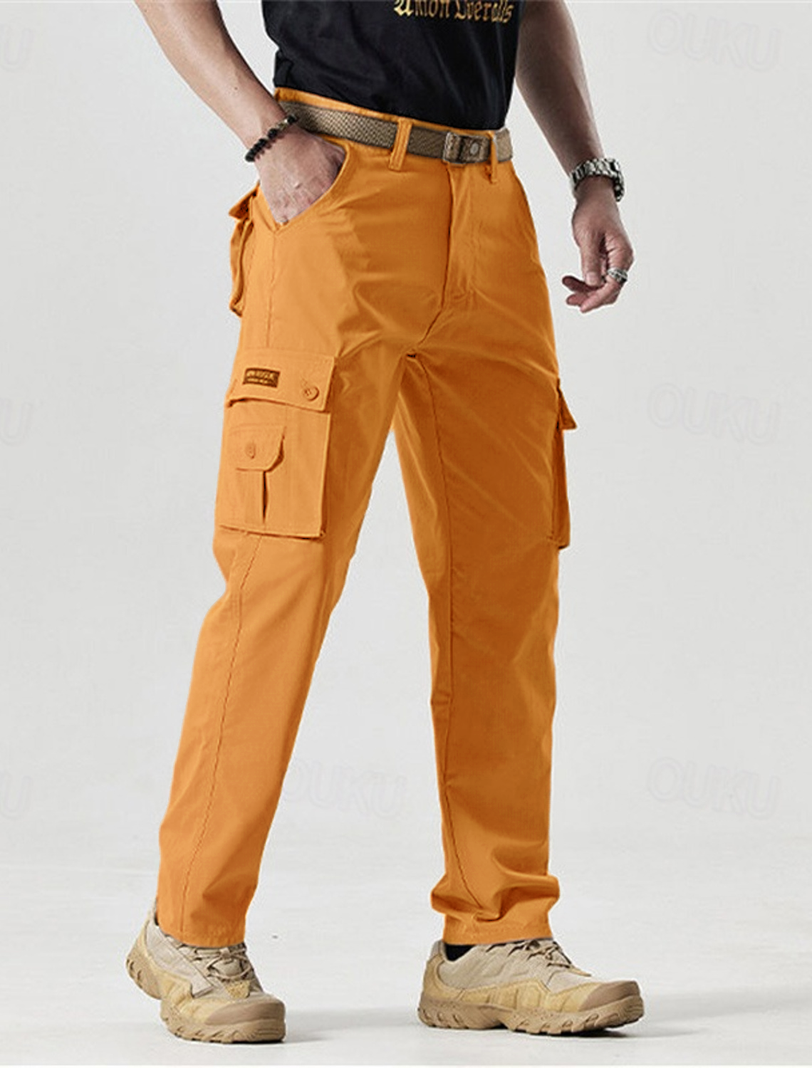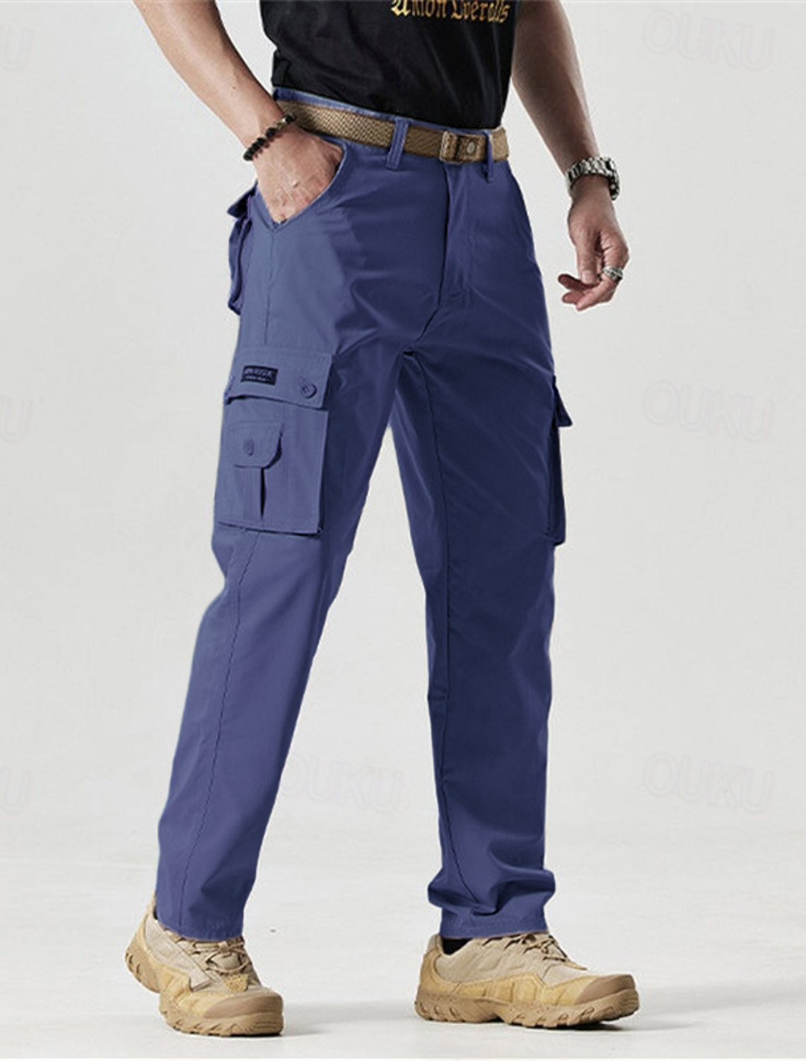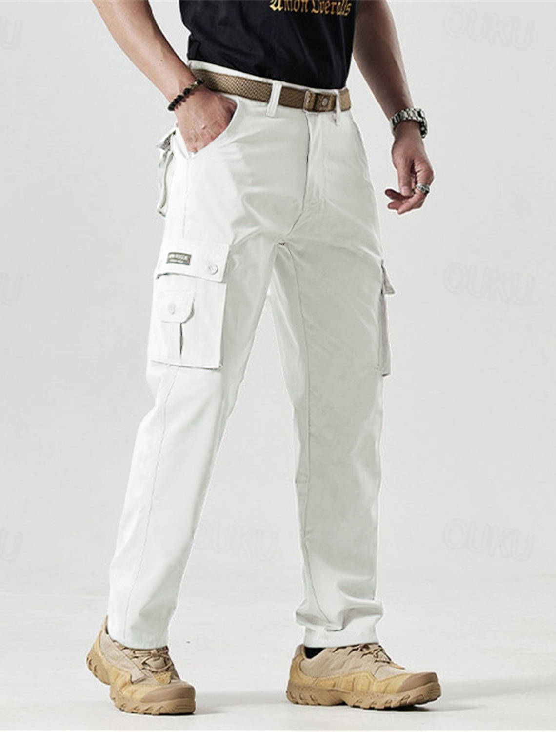 Men's Outdoor New Fashion Trend all Tie Leg Biker Overalls Men's Cargo Pants Tactical Military Pants Work Army Cotton Trousers with Multi-Pockets Men's Trousers