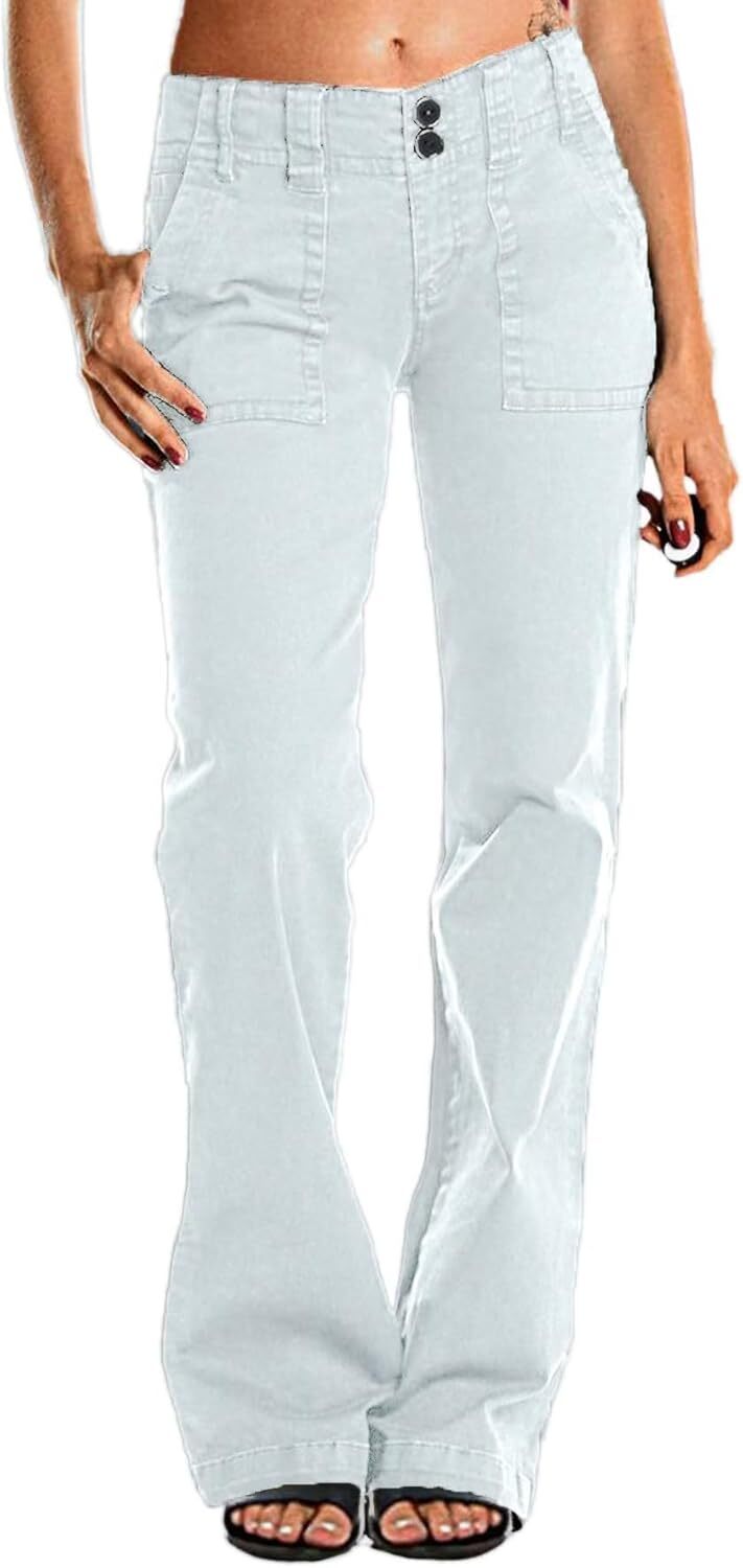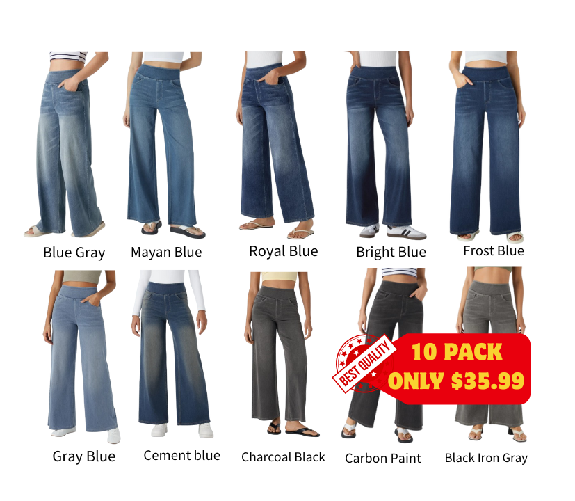 💝Last day promotion⚡High Waisted Multiple Pockets Baggy Wide Leg Washed Stretchy Knit Casual Jeans