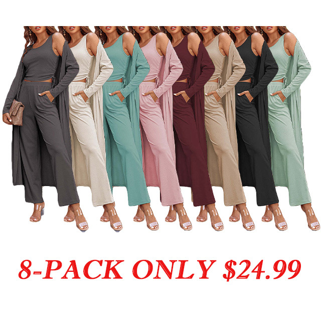 Pajama Set 3 Piece Lounge Set Drawstring Side Sweatsuit